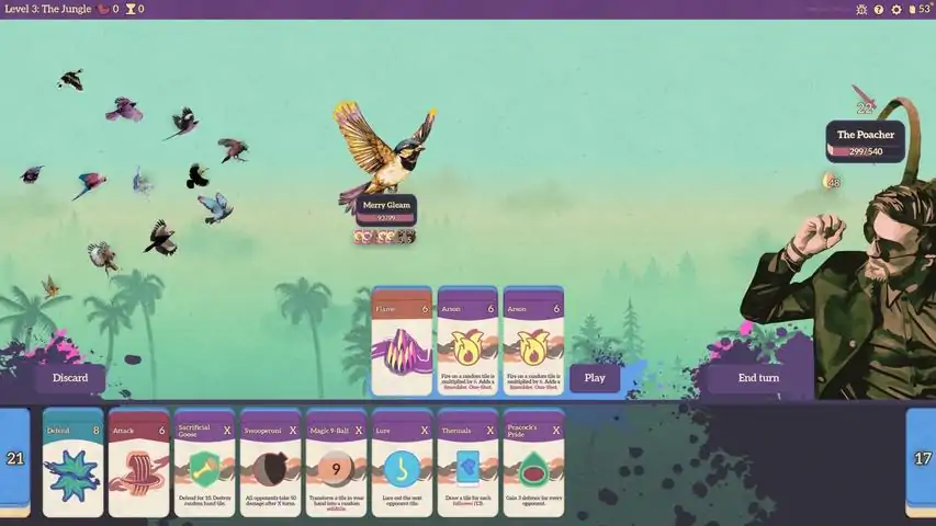 《鸟雀斗》这款牌组构筑游戏的设计理念借鉴了麻将,你需要组建飞禽大军,揭竿而起,对抗心狠手辣的诡叙师。鸟儿也打牌!游戏参考了麻将的规则,方牌需要三张三张打出,创造强大的联动效果,解救100多种鸟。获救的鸟儿会送来振奋人心的奖励,供你谨慎选择,以便合理提升牌组的性能。一路闯过6个特色各异的自然环境,击败镇守其中的6个头目。 百搭牌搭出神奇效果有没有什么秘密武器?解救鸟儿,就能获得各式百搭牌,解锁毁天灭地的超胡联动效果!150多种百搭牌等你探索。能不能打出突破游戏平衡的联动?那就看你的了。你将一次又一次回来,只为……再飞一次。各行其道游戏有4个角色可以操控,也就是四“道”。火燃尽一切,颂蛊惑心神,水生就万物,魂挺身护卫,你的鸟类会选择哪一道?四道均由自己的专属牌、全新百搭牌组合,意味着玩法各不相同,策略也各有千秋。你能飞多高?常规模式有平衡的成长系统,每日高飞模式则包含了颇具挑战性的各种变因,还有一个全球排行榜等你冲击。《鸟雀斗》具有无限重玩性,每局游戏都是新的开始,每一张牌都可能决定成败!游戏特色 牌组构筑:搭配方牌,解锁新鸟,打造强力联动效果。♾️ 重玩性无限:每局游戏都会有新的组合,反抗的方式多种多样。️ 解锁百搭牌:发现稀罕的百搭牌,打出毁天灭地的超胡组合。 玩法随心选:“道”不同,鸟类进化的形态也不相同,策略也各有千秋。 每日高飞和排行榜:挑战难度加码的游戏变因,冲击全球排行榜。‍ 内容丰富:一百多种百搭牌、鸟、自然环境、头目和增益等你体验。 局外策略:尝试用不同的百搭牌打出联动效果,在一局局游戏之后形成新的打法。