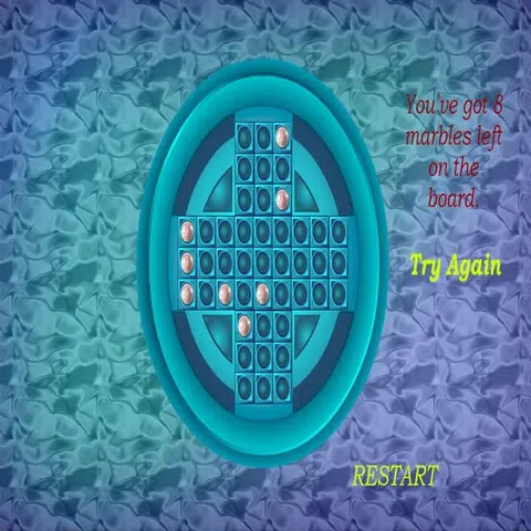 该板由可以容纳弹珠的孔(位置)组成。除了一个位置外,所有位置都在游戏开始时放置弹珠。弹珠的有效移动是通过跳过非空位置将其从其位置移动到空位置(水平或垂直相隔两个位置)。处于“跳跃”位置的弹子从棋盘上移除。当没有可能的有效移动时,游戏结束。 页面中有一个撤消移动选项,用户可以随时通过按该按钮撤消最后一次移动。在任何时候或完成游戏后,用户可以通过按页面中的重新启动按钮再次重新启动该游戏。 目标是移动弹珠,使游戏结束时弹珠尽可能少。一个大理石是一个完美的结果
