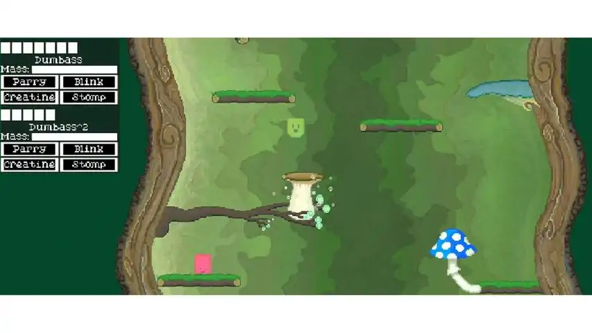 A 2D platformer fighter turned bumper-cars, there is no need to memorize tech! Just hit them!I didnt like how input-complex games like SSBU, or for better examples, Street fighter or guilty gear get. their controls are fundamnetally non-intuitive to the average joe, which creates the ever present phenomena of button mashing to win in a party setting.I thought, whats a simple character controller method that would be intuitive to pick up quickly, but has a very high skill ceiling? Pure