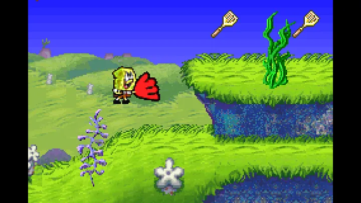GBA(Nintendo Game Boy Advance,任天堂Game Boy Advance)平台《海绵宝宝超级海绵》(英语原名:SpongeBob SquarePants: SuperSponge;汉化译名:海绵宝宝超级海绵),由Climax Group开发、THQ发行,于2001年11月5日首发,是一款基于同名动画改编的传统横向卷轴平台闯关游戏。
