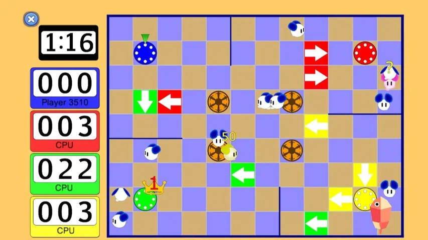 在一台设备上和在线上与机器和其他玩家竞争。 通过将玩家可用的箭头放置在方格中来引导老鼠,尽管敌人也会跟随这些箭头