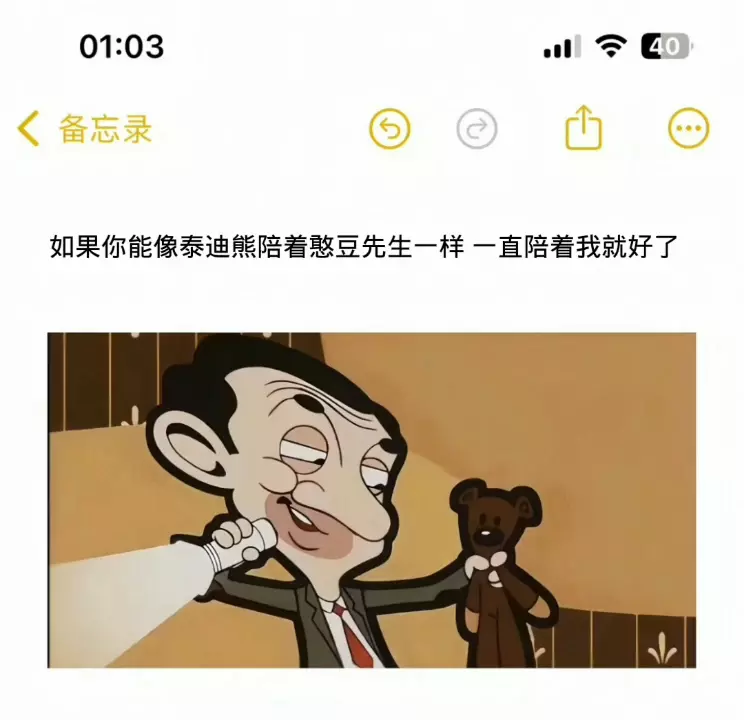 如果你能像泰迪熊陪着憨豆先生一样 一直陪着我就好了.