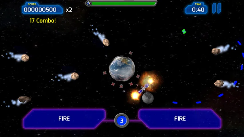 地球受到我的小行星的攻击。用月亮作为盾牌来拯救你的地球。尽你所能保卫你的星球。 点击以摆动月亮,点击并按住以加速它