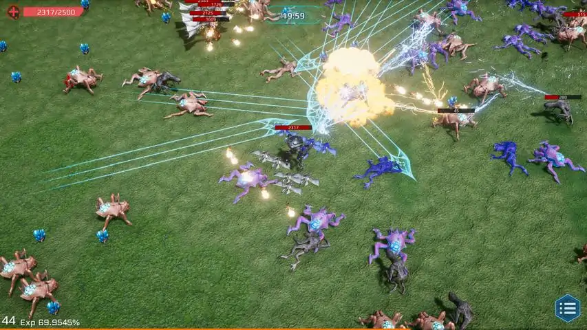 在这个游戏中升级你的技能,扫除不断聚集的怪物。 真英雄的血战就在这里展开。 使用怪物掉落的矿物质强化技能,拯救地球。 1. 感受一手轻松消灭大量怪物的快感。 2.选择随机给定的技能来建立自己的套牌。 3.使用地图上创建的矿物来升级更快。 4.当你的技能等级达到最大值时,你将能够获得奖励统计。 5.如果你一次性学习所有技能,你将能够获得奖励统计。