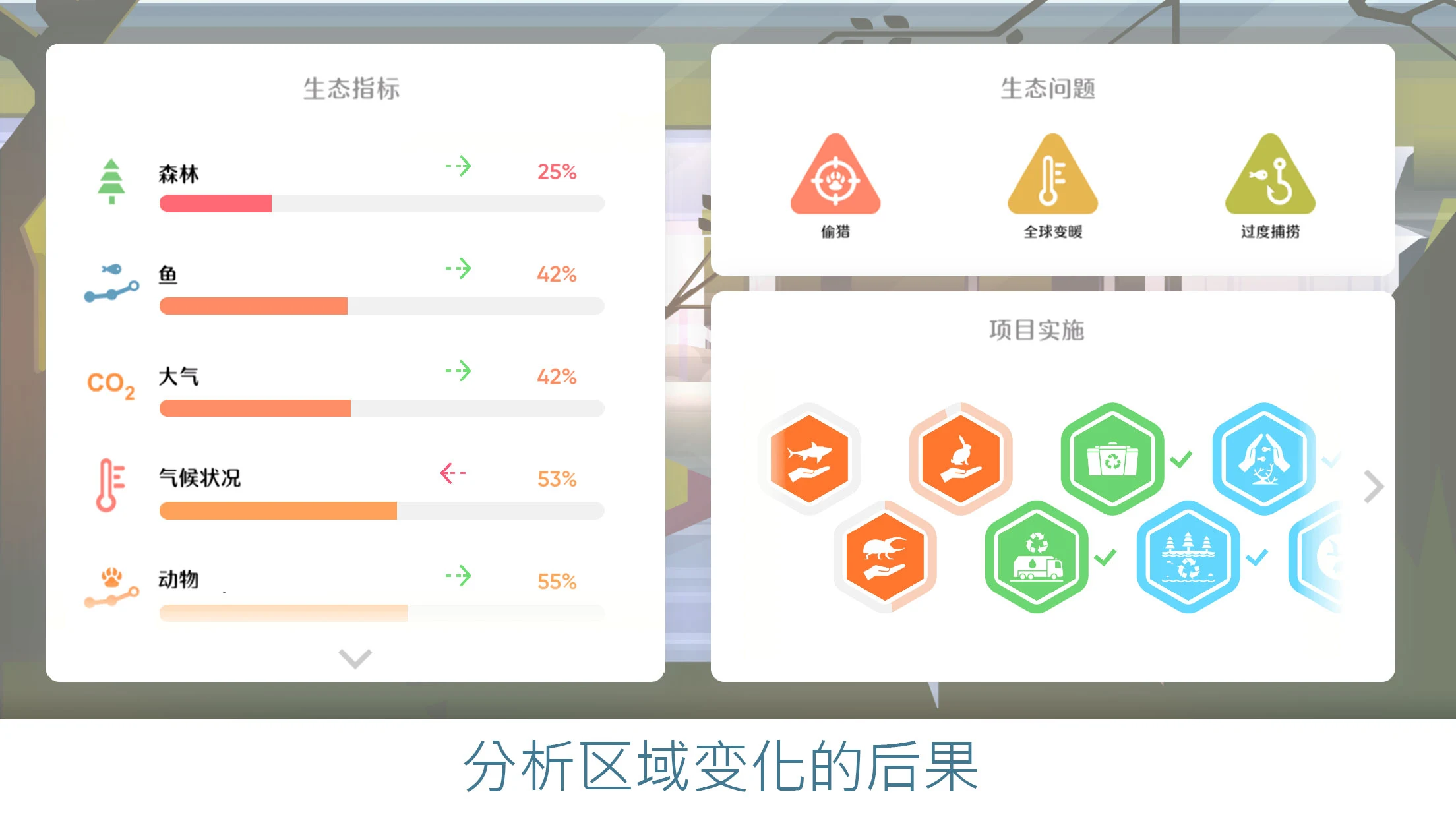 生态策略游戏,让您重新与大自然建立联系,为未来文明创造一个绿色世界。扮演地球保护基金的角色,稳定其环境状况。加入拯救地球的全球运动! 关于游戏: * 扮演地球保护基金的角色,制定环境计划。 * 各种游戏机制:从资源管理到外交。 * 复杂的任务和意外事件将考验您的战略思维。 * 通过提高对环境问题的认识,为拯救地球做出真正的贡献的机会。 *全球挑战:气候变化、环境污染、资源枯竭——所有这些挑战都需要您的解决方案。不要让环境灾难像“瘟疫”一样蔓延到整个地球。 *战略规划:制定长期计划,考虑所有因素,并做出决定地球未来的重大决定。 *经济发展:管理资源,投资新技术,建设绿色未来世界。 *志愿服务:派出您的英雄去帮助那些需要帮助的人,参与国际项目,为清洁的地球而战。 *教育:提高您的生态意识,研究实际问题并找到解决方法。 如何玩拯救地球游戏教程指南: 玩家的目标是在早期阶段稳定整个地球的环境状况。 然后,一步一步地恢复和改善地球的生态状况。是的,这是一项史诗般的任务;) 在游戏结束时,您将收到有关您的任务成功程度的统计数据。 每一步都会导致不同的后果,您需要采取深思熟虑和快速的行动。 可用的游戏模式: 拯救地球(全球模式); 地区问题:阿拉斯加、不列颠群岛、澳大利亚; 海盗; 全球变暖是气候罢工!; 打击偷猎; 加入全球数百万生态英雄,成为拯救地球的全球运动的一部分!:)