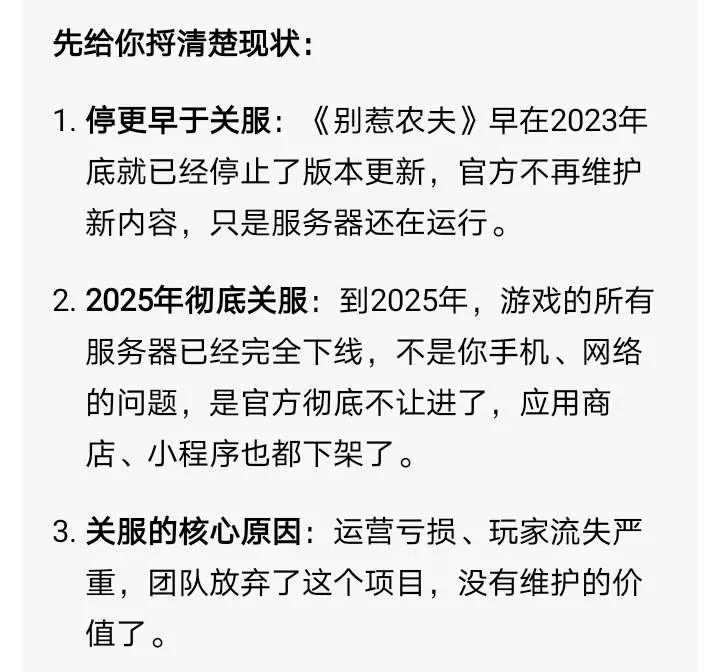 别惹农夫已停服。