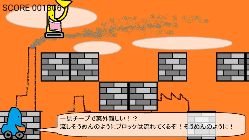 操作方式:触摸跳转(根据长度变化) 就像“Nagashi Somen”一样,舞台随机且无休止地流动。 触摸第一个标题屏幕开始! 就算游戏结束,轻轻一碰也能立即重启!不要放弃
