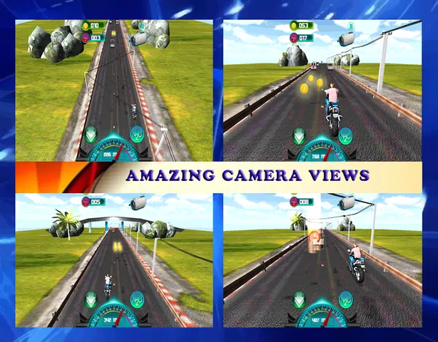 摩托赛车真实自行车交通骑手 3D 游戏是一款不同于自行车骑手、赛车、摩托骑手等其他游戏的游戏,您可以说这款重型自行车摩托游戏与其他摩托车赛车方式不同,但它有一些令人惊叹的动作。两种不同的环境城市和高速公路,具有完整的跟踪系统和美丽的环境,您将感受到驾驶真正的自行车。您需要在高速公路赛道上进行平稳而清晰的自行车驾驶,并进行自行车控制以及其他各种射击方面的工作,因此准备好在两种模式下进行无尽的自行车特技赛车冒险游戏,并进行大量的真实动作。