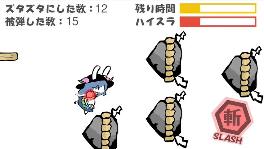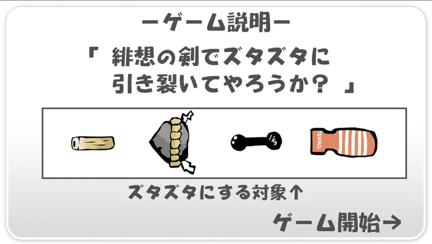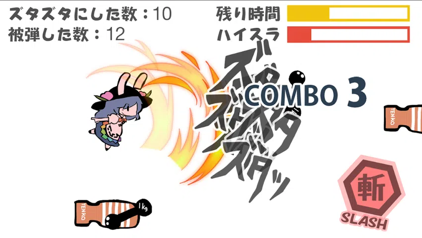这是一款 Tenko-chan 将梯形石和 chikuwa 撕成碎片的游戏。
