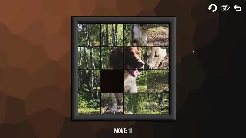 Intelligence: Dogs - is a puzzle game in which you want to build an image (with dogs) so that the picture was like the original image. Move the puzzle tiles wisely to collect the correct order of the image pieces. The essence of the game as in the old game "Tag" (15). The game will have 6 levels with a field size of 3x3, as well as 6 other levels with a field size of 4x4. Each level has a different