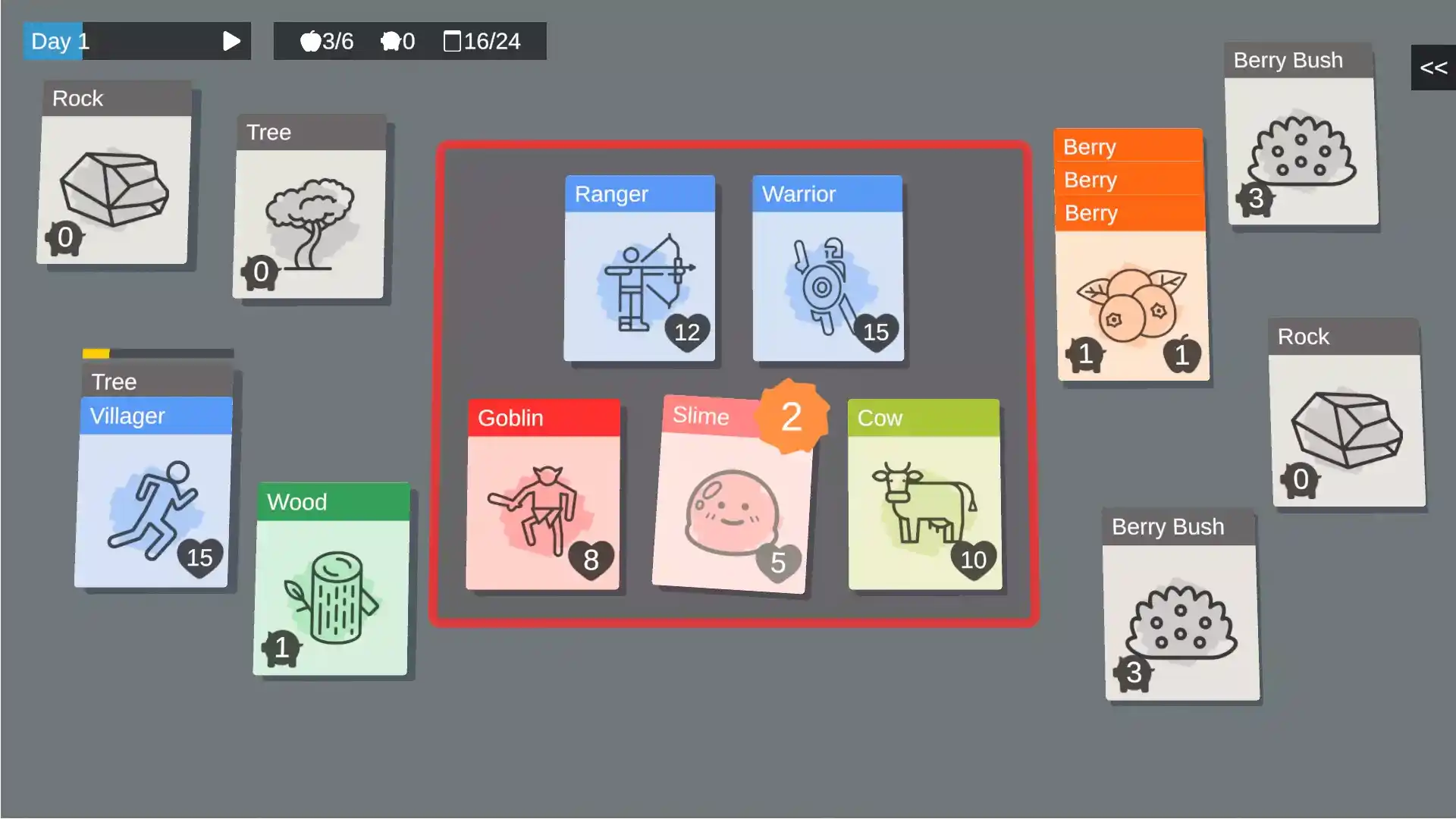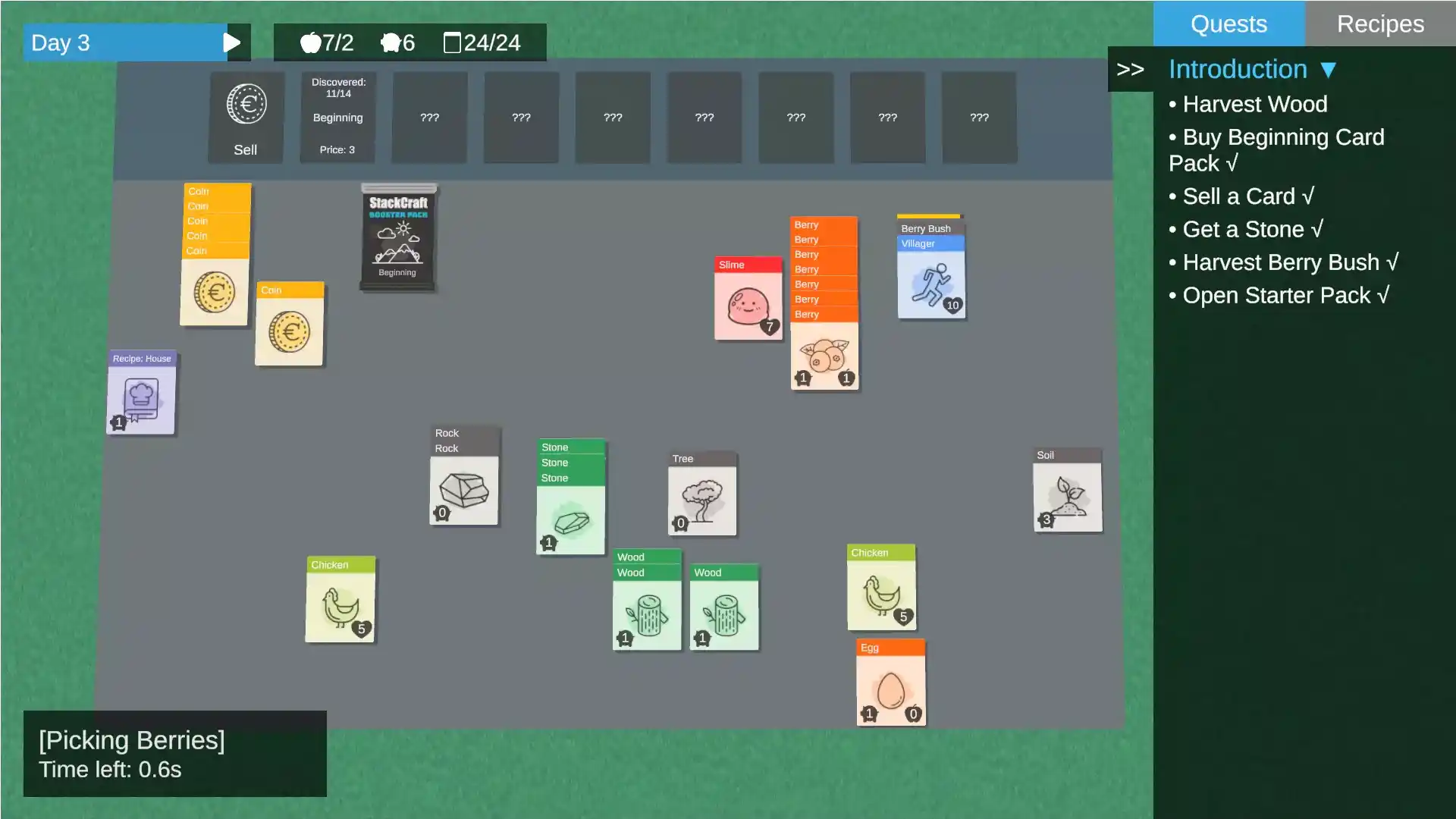 游戏灵感来源于生存和基地建造类游戏,更注重有意义的决策、系统间的互动以及探索驱动的玩法,而非预设的解决方案。每一次卡牌堆叠都至关重要。 核心玩法 万物皆卡牌 资源、建筑、角色、敌人和工具,一切都以卡牌形式存在。将卡牌堆叠在一起,可以触发新的互动、制作物品或解决冲突。 动态堆叠系统 并非所有卡牌的行为都一样。有些堆叠可以制造工具,有些会启动制作流程,还有些则会带来危险。掌握不同卡牌类型之间的互动方式,是生存的关键。 基于天数的生存循环 每一天都分为几个阶段: 喂食 – 确保你的族人生存 销售与管理 – 优化资源分配 遭遇 – 面对事件、敌人或机遇 新的一天 – 世界随之演变 你生存的时间越长,世界就会变得越具挑战性。 战斗与遭遇 战术卡牌战斗 通过一个类似“剪刀石头布”的战斗系统与敌人交战,站位、卡牌选择和时机将决定战斗结果。 动态遭遇 敌人、盟友、稀有资源和突发事件会根据你生存的时间长短而出现。每一次游戏体验都独一无二。 进程与发现 实验性制作 通过富有创意的卡牌堆叠方式,发现新的制作配方。成功发现的配方会被永久记录,方便后续游戏使用。 任务与长期目标 完成诸如生存特定天数、发现稀有卡牌或扩张定居点等目标,可以解锁新的可能性。 进度持久保存 你的世界状态会完整保存,包括卡牌位置、已发现的配方和游戏进度——让你随时可以从上次离开的地方继续游戏。