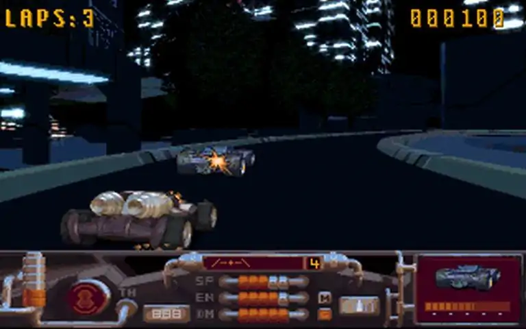 You know those punk highway gangs, the ones who really think they rule the road? You just hate them, don't you? So you say, 'Somebody ought to do something about them criminal highway gangs!' And we say, 'Oh yeah?! Well, why don't YOU do something, mister big-mouth!'. You don't have the car? We'll give you the car! You don't want to get arrested for taking the law into your own hands? Not a problem! You know why? Because it AIN'T REAL! It's a whole lot better than real, baby! It's virtual television: reality's worst nightmare! * Aggressive, high-velocity, futuristic racing * Breathtaking visuals for their time, achieved by using prerendered video sequences * Sometimes witty, sometimes just plain cheap commentaries by the memorable Lance Boyle