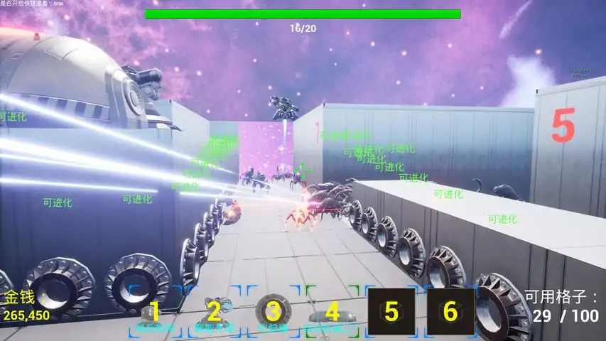 技术问题或BUG反馈欢迎加入企鹅群解决 323324474《Monster Line of Defense/怪物防线》是一款休闲射击类游戏。玩家需要通过左右移动操作画面中的炮塔,点击左键开炮射击迎面而来的怪物,当怪物没有被消灭时,就会堆叠在炮台附近前面。游戏为闯关制,后面的关卡会比前面的难度更高一些。操作指南键盘AD键操控炮台移动,鼠标移动瞄准,左键点击开炮。在开始游戏前您需要先装备上合适的武器。游戏特点游戏难度休闲级别,比较适合不想花费太多精力通关游戏的玩家,在游戏中获得的金币可以解锁更强大的武器。希望大家能够喜欢上这款游戏。在选关界面按字母键上方的2+5可以快速解锁关卡。