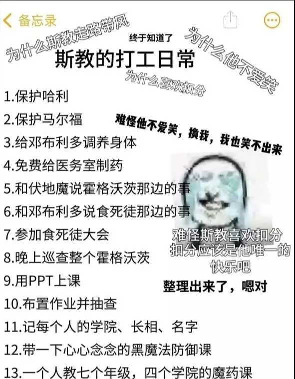 斯内普都打工日常:1.抽空想莉莉2.抽空骂詹姆3.整个学院抓早恋4.超级背锅侠5.他甚至连洗头发的时间都没有 #抽象