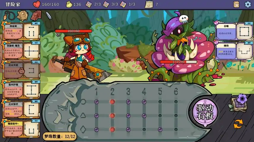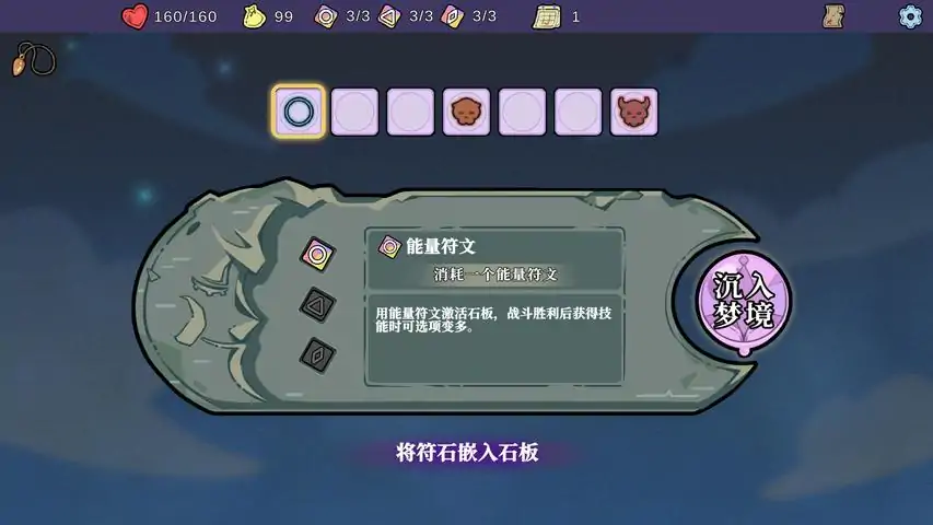 《通梦板:终焉前21日》是一款特殊的类rogue游戏。作为通梦师中的一员,玩家能够借助石板的力量在现实与梦境中穿梭。通过符文占卜来影响梦境,从而不断地变得更强,在21天内击败侵入现实的怪物并拯救这个世界吧!--------------------------------------作为被“通梦板”选中的人,你能够驱使石板在现实与梦境间穿梭。用梦珠在石板上连接出特定的回路,施放强大的技能或限制对面的技能。你的每一步行动都至关重要,谨慎决定要强化自己还是干扰对面。你可以在战斗前自由调整技能,也可以在不战斗时自己决定该如何强化自己。非常可爱的主角,以及画风。--------------------------------------试用版包含一个可用的角色。后续的不同角色将会拥有完全独立的技能池,以及部分专属图腾,就像其他这类游戏一样。两个不同的难度等级。如果对于你来说不够有挑战,正式版将会有额外的4~9种方式来为难你。两周的游戏内容。你需要在21天内拯救世界,但是现在还不是时候,先在前14天活动活动手脚吧。