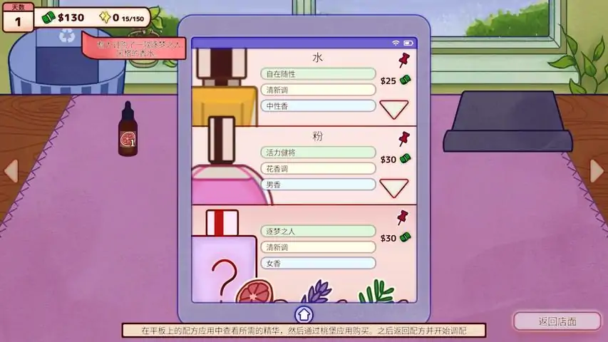 立刻添加愿望单!关于游戏亲爱的调香师,欢迎回到你的小店。将一切纷扰丢在门外,静下心来和鹦鹉伙伴一起打理这间香水工坊吧!在这里,你将邂逅性格各异的客人,为他们挑选最适合他们的香水,让每个客人都满意而归。现有的香水没法满足客人的需要?没关系,请他们先留下订单吧,你可以为他们定制专属香水。在繁忙的一天结束后,回到你的调香实验室,精心调配每一瓶香水。调制香水不仅是艺术,更是技术,任何细微的误差都会对结果造成巨大影响。香料的顺序、溶剂的比例、温度的调控,以及搅拌的时机和频率,每一处细节都需要你精准把握!突破重重挑战,做出最完美的香水吧!每一瓶香水都给人带来丰富的感官体验,完美的香水自然需要与之相配的包装。为你的香水命名、挑选最合适的包装、贴纸。随着你作为调香师不断成长,你将解锁更多配方、香水和包装材料,收集它们,做出独一无二的香氛吧!
