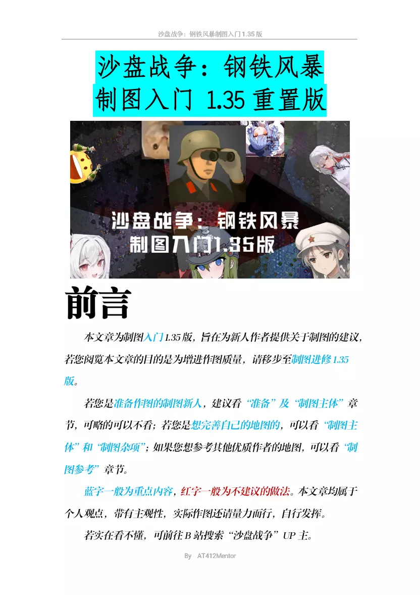 自己做的制图入门,适合刚入门的制图作者看,如果是想搞点新花样的,等下个月的制图进修1.35版。 入门的实例视频后面一两个星期会做成视频发到B站,可以搜索B站“沙…