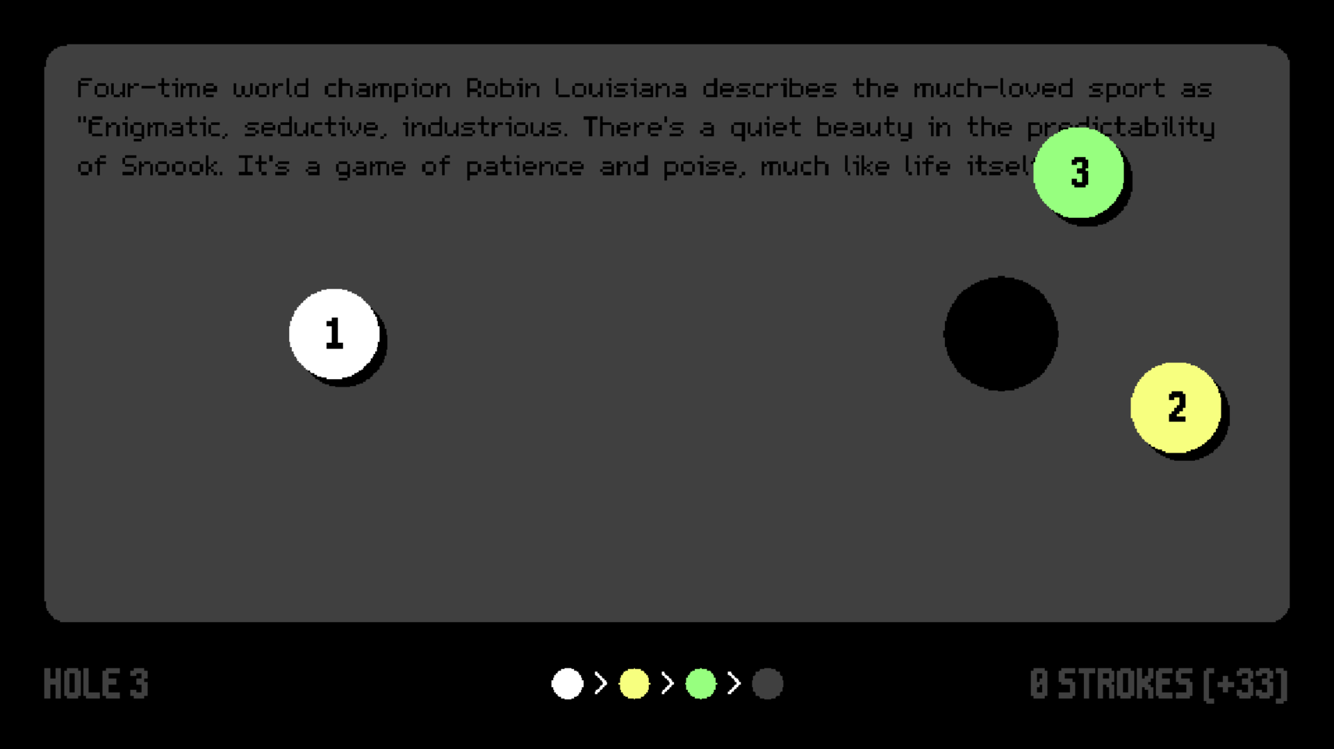 《斯努克》是一款由 Daniel Linssen 在数小时内制作的无尽解谜游戏。游戏没有终点,请在它不再带来乐趣时停止游玩。 按 Tab 键 反转输入方向。 进度会自动保存,长按 Delete 键 可重置进度。