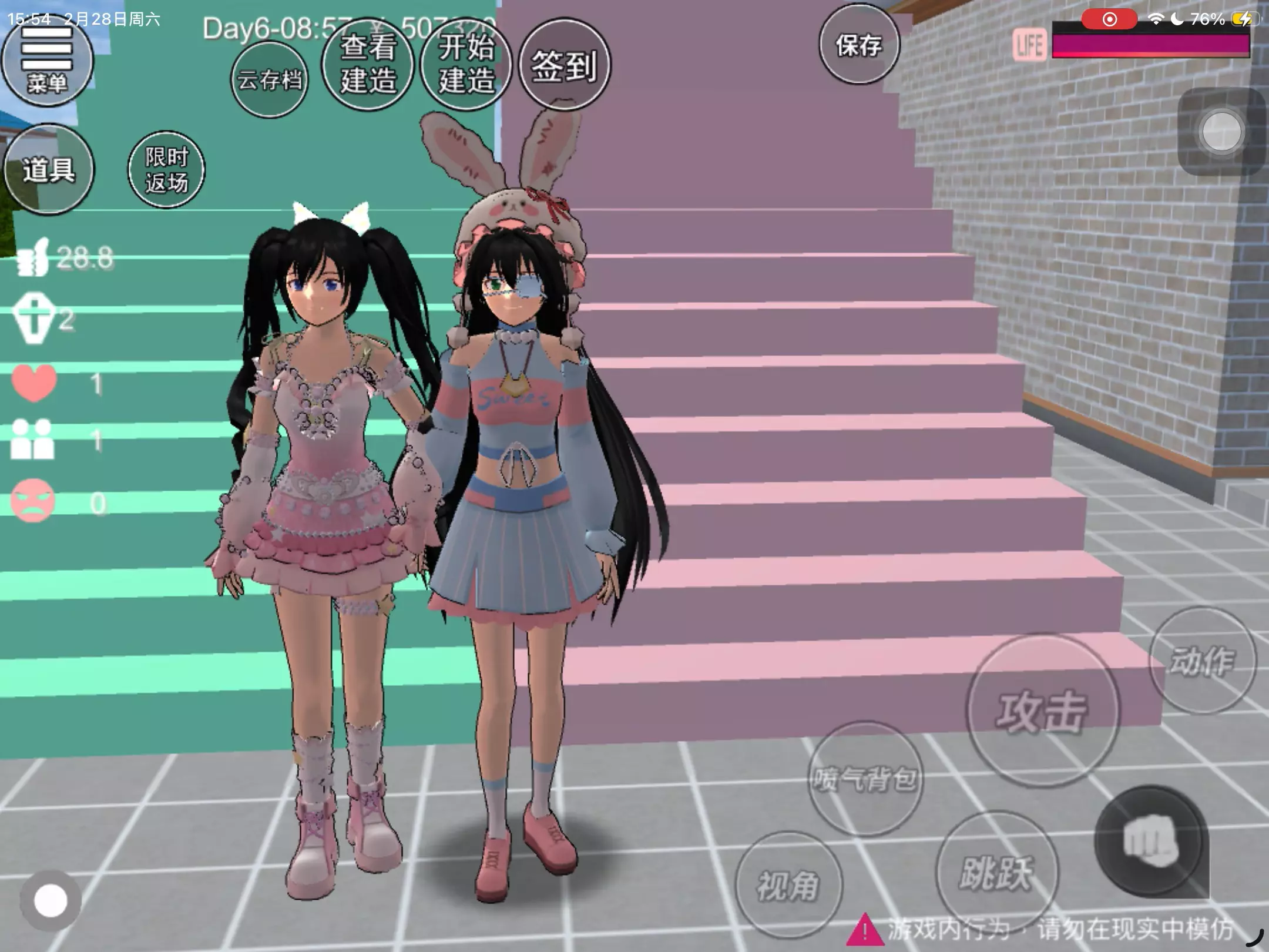【-闺蜜粉蓝双人跑酷建造-】