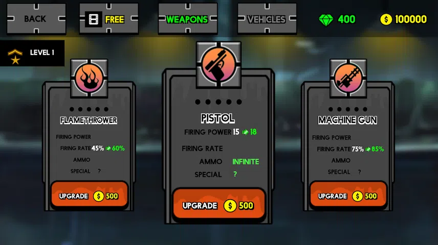 ● 超过188把独特的武器: 自动手枪, 机关手枪, 冲锋枪, 突击步枪, 精确射手步枪, 轻机枪, 霰弹枪和榴弹/火箭发射器! 全新重型武器: 加特林死亡机器和.50口径机枪!