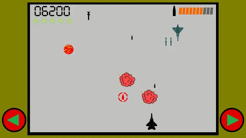 # 【About 2025 -TOBI-】 The second in Kibodo's classic game series. It is a vertical scrolling shooting game! Controls are left and right movement only. The game is over when the fighter runs out of bullets. Get items to replenish bullets and destroy the enemies in front of you! Aim for a high score! # 【Items】 **●Bullet** **●Shield** **●Power-Up** **●???**