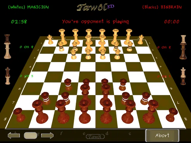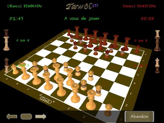 Tawôl 3D 在 64 个方块 (8x8) 的棋盘上进行。每个玩家有 8 个塔和 10 个棋子。 玩家们在智力和狡猾方面进行竞争和竞争,以夺取 8 个对立的塔楼。如何 ?好吧,把他们每个人的棋子都翻过来。 Tawôl 3D 是一种允许玩家竞争的在线游戏服务。没有人工智能,你和另一个人比赛。从您的客厅在线与最优秀的玩家竞争。 立即下载,激情体验3D策略