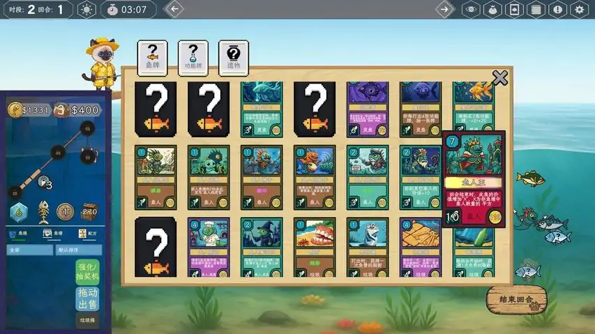《钓鱼牌》是一款卡牌Rougelike游戏,在游戏中,鱼不仅是鱼,更是卡牌。在游戏中,您将扮演一位交不起猫粮钱的小猫咪,在为期6个时段、总计24个回合的挑战中,体验一场策略与运气并存的生存冒险。玩家的目标是构筑一个能持续赚钱的鱼塘生态系统,以缴纳不断上涨的猫粮钱。 核心玩法围绕着“从商店买鱼苗-构建鱼塘-钓鱼-卖钱”的循环展开。此外,每回合结束时,你也能从池塘中获得利息。游戏内拥有30多种不同效果的词条,40多种功能各异的功能牌和60多种能改变全局的遗物,来让你的鱼与鱼之间产生奇妙的连锁反应。此外随着游戏进程的推进,您可以选择不同的初始技能开始游戏,在随机生成的任务和奖励中,每一次开局都是全新的体验。