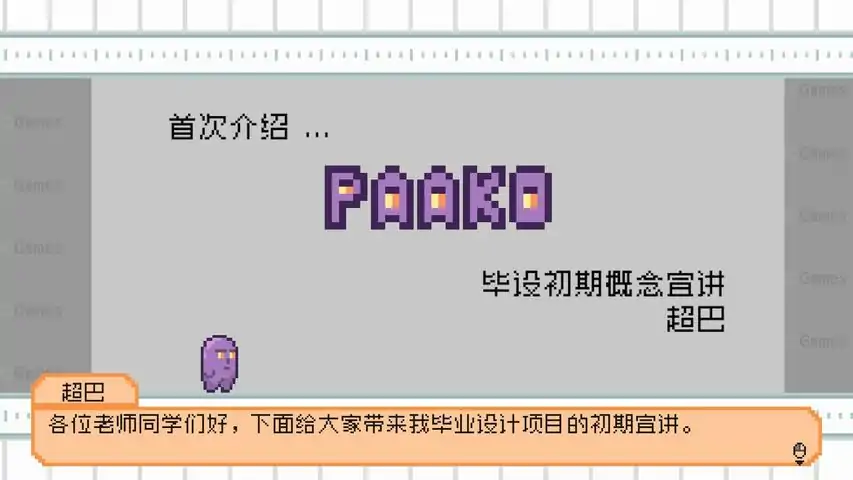 加入我们欢迎关注我们的Bilibili官方账号HawthornGames:,获取最新游戏消息及CDKey抽奖机会。QQ玩家交流群:249419962,反馈您遇到的问题及建议。关于游戏《一个叫Paako的游戏》是一款像素风横板Meta游戏。游戏讲述了一个游戏专业研究生如何完成他的毕设项目:《一个叫Paako的游戏》。质量可靠的二段跳和蹬墙跳(经典的总是好的)一个钓鱼小游戏(猜到了)看一场脱口秀(为啥?)找一份工作(如果找得到的话)聆听你的内心回声(我才没有这种东西)《一个叫Paako的游戏》最初是南加利福尼亚大学(University of Southern California)的学生毕设项目,在学生团队Team Paako的协助下,由黄超然开发制作。欲了解更多信息,请访问USC Games的出版商页面。如果想了解更多关于全球排名第一的游戏专业USC Games的信息,请访问南加利福尼亚大学游戏项目网站。