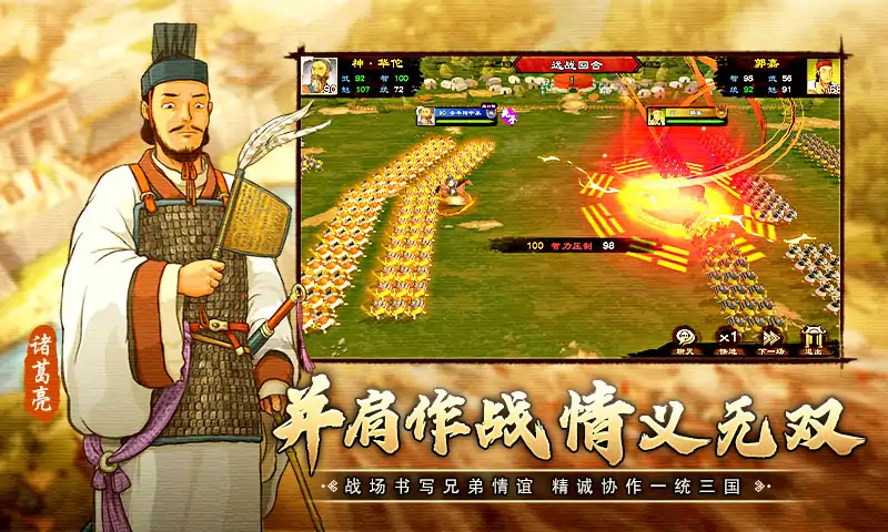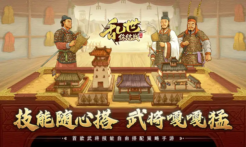 《乱世终结战》手绘涂鸦真实还原三国风貌!穿越千年历史,刻画三国英豪,呈现一个纵横幻想与史实的三国策略手游。从初出茅庐到完成千秋大业,斗机略、比谋算,铺陈出一段群雄逐鹿的激烈征战。既有历史线,同时也融入了招募历史名将,派兵遣将、扩城建地,开放式大地图场景,全天候激烈国战,局势瞬息万变,多线发展,带给你不一样的策略国战体验! 在古代战争的世界中,天下三分,存在三个强大的国家,在中原这块土地上的三处建立了国都,起国号为魏、蜀、吴。 主公们选择国家效忠,通过招募天下英雄,成为自己麾下武将,带领士兵为国家开疆拓土。 但由于招募武将来自于山野,仍要经历军事化培养才可有一战之力。培养武将是一门永无止境的学术,主公需要从天下各处搜罗培养材料,灵活使用他们来培养麾下武将,给他们研读古时名将留下的兵书提升作战能力,吸收技能碎片获得战斗技艺上的提升。战斗能力提升后,天下三分的世界更是武将大展拳脚的好去处,因此,主公会指挥麾下武将,与其他主公武将切磋武艺,为国家抢占城池,实现国家天下统一的夙愿。