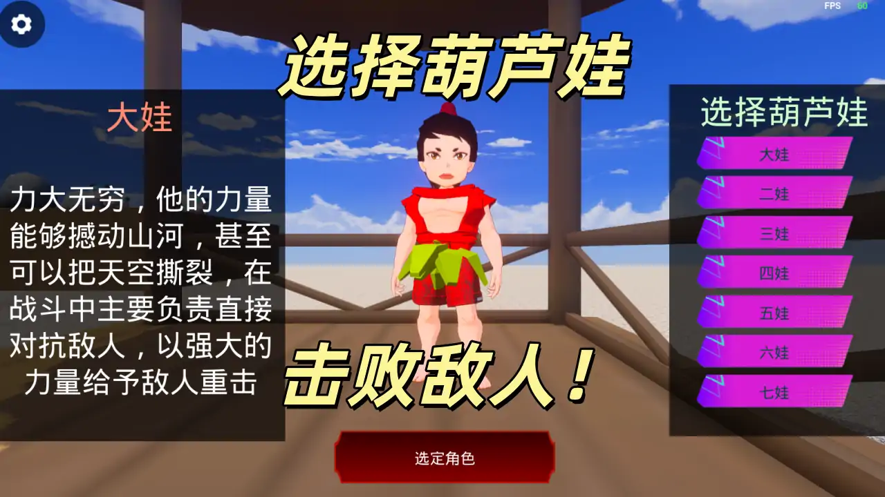 46.6 万 热度 致敬中国经典动画片葫芦娃,游戏基于第一人称射击的FPS游戏模式,玩家扮演爷爷协同葫芦娃一起抵抗妖精的进攻。 游戏玩法: 游戏是基于中国经典动画片葫芦娃改编的FPS枪战游戏。 游戏总共有9种妖怪,分别是蛤蟆镜、壁虎精、蝙蝠精、蟒蛇精、蜘蛛精、野猪精、蜈蚣精、蝎子精、蛇精 总共有7种葫芦娃 游戏内总共有56种不同的枪械,功能各不相同 打死妖精后,会获得金钱,使用金钱可以购买枪械和升级葫芦娃 当金钱足够的时候在家门口的葫芦藤上对准葫芦按下F键可以激活葫芦娃,每个葫芦娃需要激活4次才能出生 葫芦娃同样可以升级,葫芦娃能升级3到4次,等级越高其相应的能力也越强 大娃:可以将头上的葫芦扔出砸妖精,自己也可以攻击妖精 二娃:在二娃周围可以获得一个攻击加成的buff,最高1.5被伤害加成 三娃: 每隔一段时间可以制造武器,升级3娃加速武器制造速度,并获得一个伤害加成 四娃: 升级4娃可以有概率产生高阶武器 五娃: 隔一段时间可以产生泡泡,泡泡可以控制妖精并造成一定伤害,升级泡泡会变多 六娃: 可以控制一个妖精,升级控制时间变长 七娃: 扔出头上葫芦,升级可以多次攻击 秘密: 爷爷家里的箱子里有武器,可以以便宜的价格获取 集齐7个葫芦娃可以召唤山神
