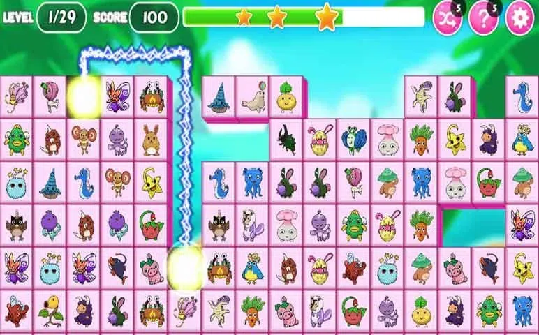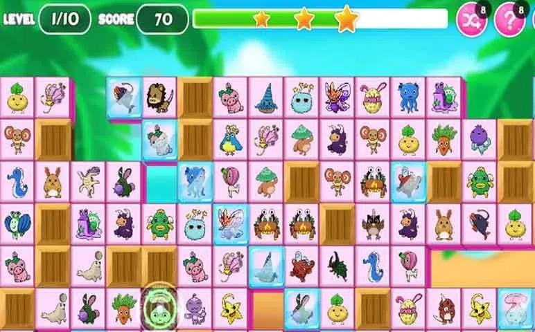 经典:将 2 个相同的可爱图标配对,消灭所有的小动物,在有限的时间内清理棋盘。