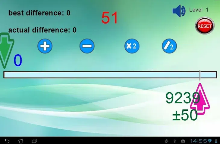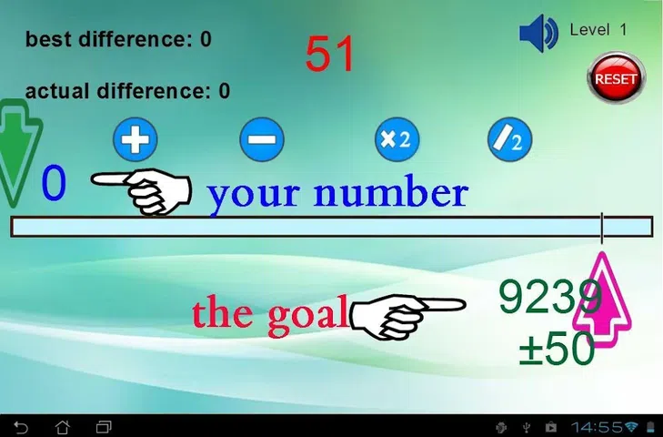 一款有趣、令人上瘾且非常简单的游戏。 怎么玩: - 首先,游戏选择一个随机数(目标)。 -您将从数字 0(结果)开始。 - 您需要添加或减去屏幕顶部出现的随机数,以使您的数字(结果)等于目标。 - 您也可以将您的数字相乘或除以 2。 游戏有 6 个级别: -级别1:目标是X±50(x是随机数) (例如:如果目标是 1450 ± 50 ,如果您的数字(结果)是 1400 到 1500 之间的任何数字,您就赢了) -2级:目标是X±30 -3级:目标是X±20 -4级:目标是X±10 -5级:目标是X±5 -第6级:目标是X±000(你必须得到准确的数字) 祝你好运:D 更新 : 删除了不必要的权限(地理位置、.