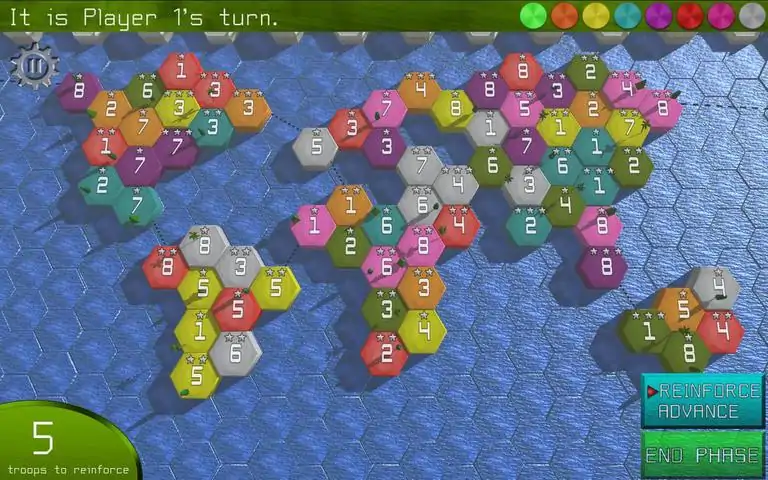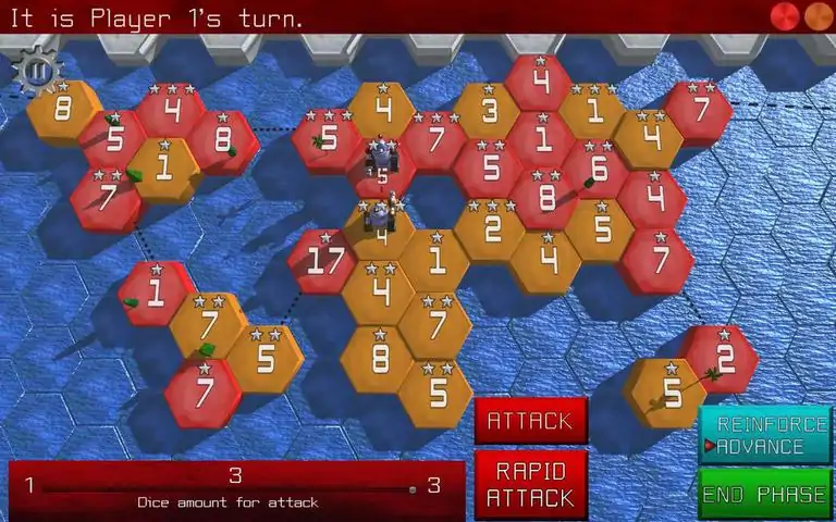 在这款回合制游戏中,每个玩家都是居住在六边形世界中的机器人派系。你的目的是捕获所有的六边形,从地图上清除你的敌人。您拥有的六边形越多,您每回合获得的部队就越多。 Robonomy 中最重要的元素是六边形的级别(1 到 3),由星星表示。他们决定了你将从那个六边形中获得多少军队。所以,是的,您应该专注于捕获有价值的区域!