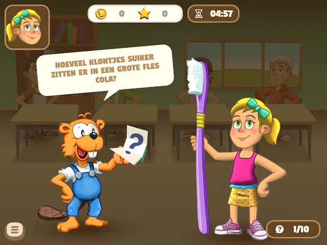 Ben de Bever在这个关于口腔卫生的教育游戏中扮演主角。 第一年的孩子们可以和Ben de Bever一起做所有事情 了解口腔卫生。擦洗虚拟牙齿并单击 从而去除所有细菌。帮助牙医选择合适的牙医 仪器。尝试尽可能多地收集健康食品。玩吧 如果您了解口腔卫生的一切,请参加Bever测验