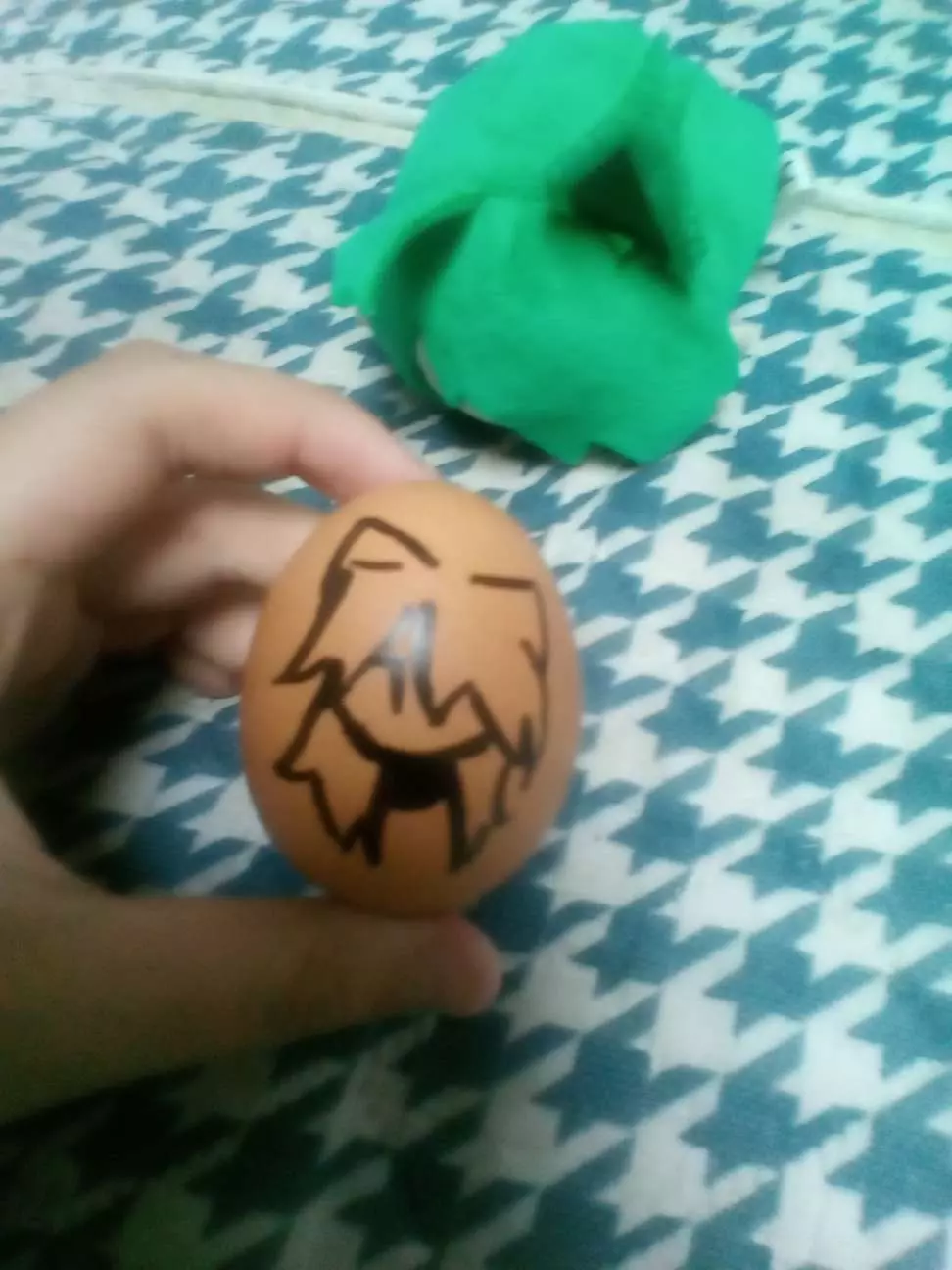 在鸡蛋上画了一只祖玛🤓🌹(我推。 真不行了我妹的清明作业为什么是碰鸡蛋🤔。