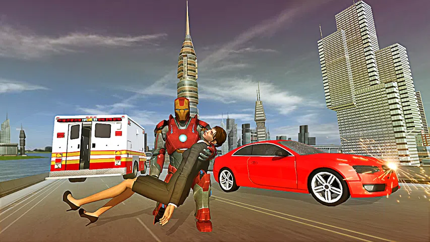 Mennesker av hele herobyen ser forhjælpog de tror at en utrolig jernhero kan bli en forsvarer og savior av det hele futuristiske byen samme som andre robotkrigsspill。
