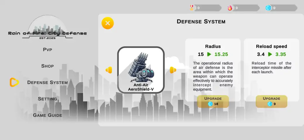 在 Rain of Fire 中,你将成为一座城市的指挥官。城市面临来自天空的导弹威胁,你必须建立强大的防御系统来保护你的人民。
