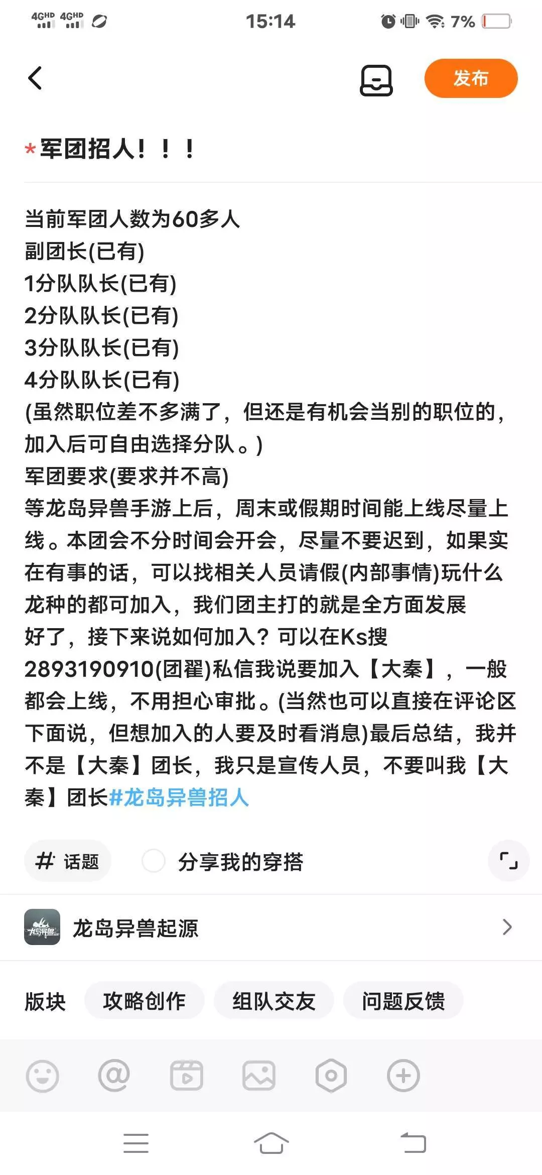 团名:【大秦】(这个【大秦】不是电脑服的【大秦】,这是我们在手游自己创的,请不要带节奏,谢谢!!)#龙岛异兽招人