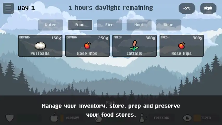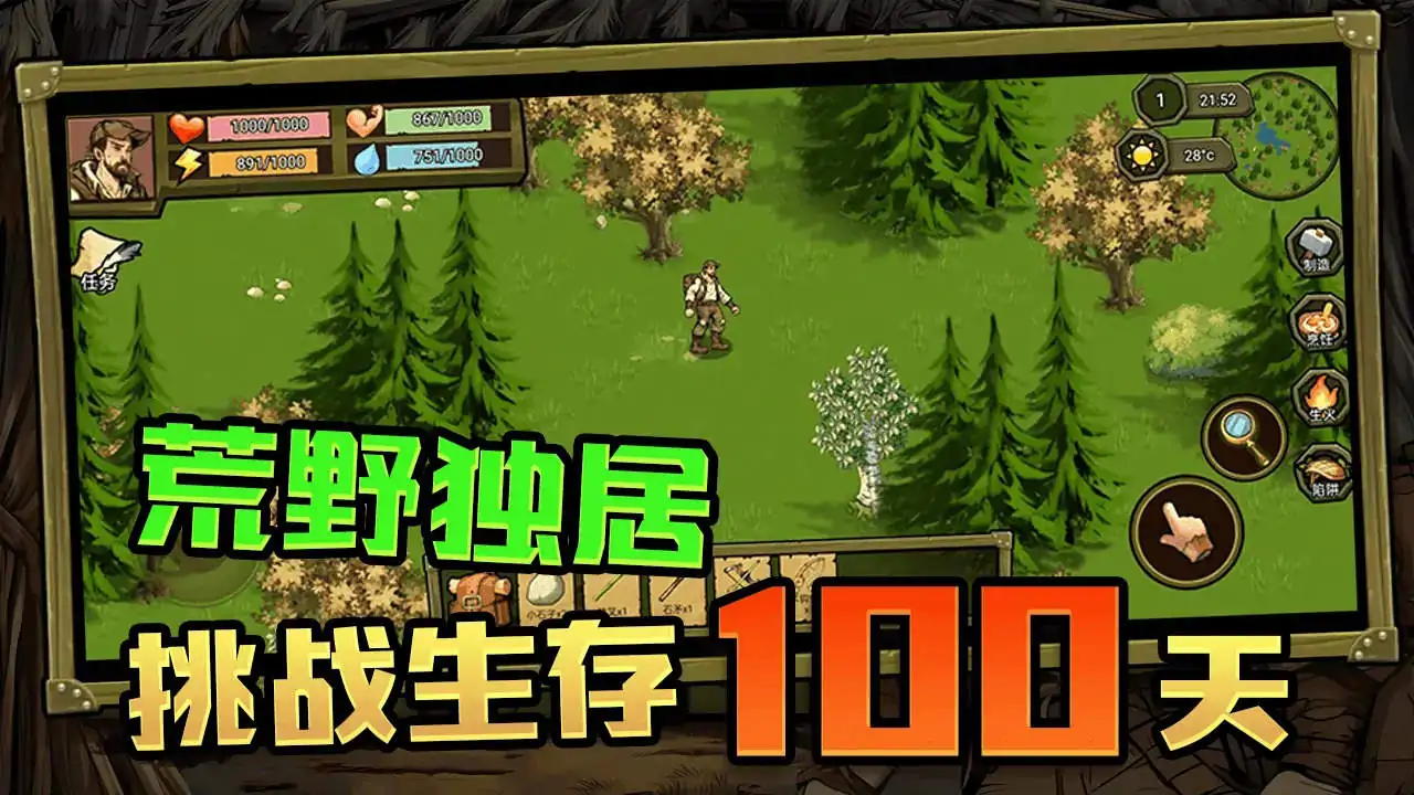 这是一款荒野求生类的游戏,2D类生存,通过组合不同的物品,在危机四伏的寒冷荒野中,生存下去。[h2]玩家介绍[/h2]1每回合拉动拉杆,会随机转动轮盘,给与玩家生命,攻击,防御,保暖,体温,饱腹,口渴值。2选择物品添加到背包里,双击可以将背包物品转移仓库,或者将仓库转移到背包里。3每6个回合可以移动到其他地方生存,同时面临新的机遇或挑战。4每过一天温度会不断降低,需要玩家获得更多的物品生存下去。