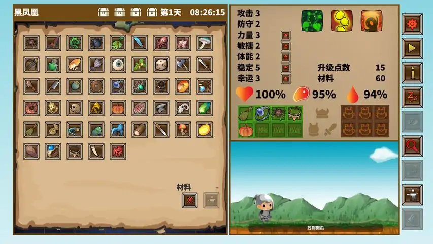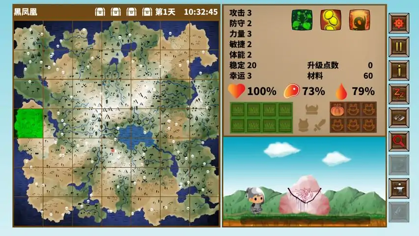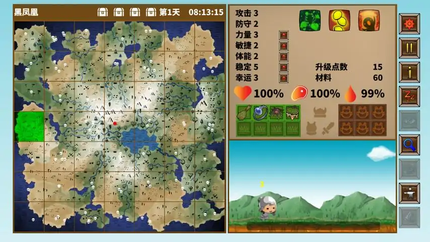 概述来自圣物收藏的家族的你,寻找圣物是你主要目的.这次是你第一次家族任务,你会在一个荒岛里不断锻炼自己和面对所有的怪物和生存的挑战.直到你从四个强大怪物身上得到四个圣物后,才可以离开这个荒岛.主要任务在四个强大怪物身上得到四个圣物击退怪物选择你的技能如何玩在岛上移动,喝水,进食以维持你的健康和从击败有限的怪物来提升你的能力.每个怪物在击败后都会掉落道具/装备,使用它们来提升你的能力. 同时你可以回收多余的道具,制作你需要的道具来设定你的击败等级3怪物的策略. 当你认为你已经准备好的时候,就挑战等级3怪物以夺取你要的圣物.游戏特点自行或随机设定你的能力自行或随机设定你的技能荒岛上移动,搜索和寻找怪物和道具从低级怪物身上锻炼,不断升级自己设立陷阱,削弱怪物获得装备后,利用装备暂时提升自己的能力使用特定道具可以让你寻找隐藏物品饥饿和口渴是你需要担心的问题随机怪物搭配随机怪物技能寻找与启动地标,获得特殊效果利用有限的资源,寻找最适合你个方式击败第3级怪物避开毒素区域和保持你的生命