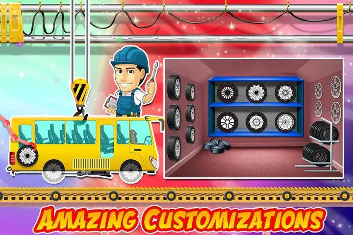 在汽车制造商和卡车工厂模拟器游戏成功后,儿童游戏工作室自豪地提出了汽车工厂生成器游戏。现在玩和享受虚拟生成器游戏在现实的工厂模拟。 喂小心!它的驱动程序总线构建器驾驶时间。你曾经梦想通过使用你的修理和建设技能创建自己的公共汽车和卡车吗?想成为汽车制造商和技工?你在正确的地方。作为一个移动巴士设计师,创造者和制造商在这个汽车工厂和制造商模拟器游戏的超疯狂力学。搭建公共汽车就像你在这个卡车制造商车间使用现代机械和工具建立迷你跑车和赛车。所以?你在等什么?开始行动,开始制造,创造和设计重型车辆。 司机正在等他们的校车和客车,赶快!是城里最好的汽车修理工