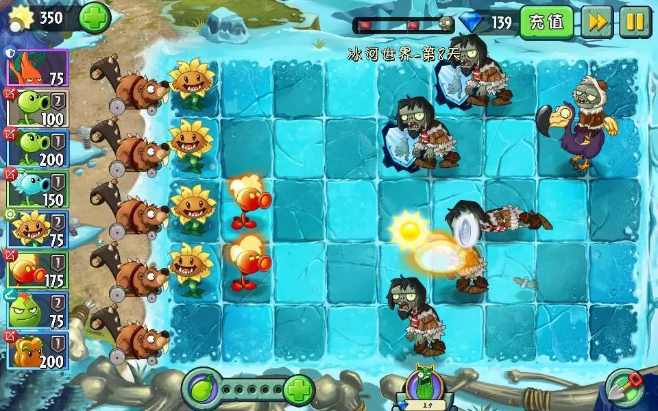 我建议大家上冰河时代的时候带火系植物,因为这里的话植物会被冻住的。火系植物可以解冻。当然我知道老手都知道,但是这个是给新手的。