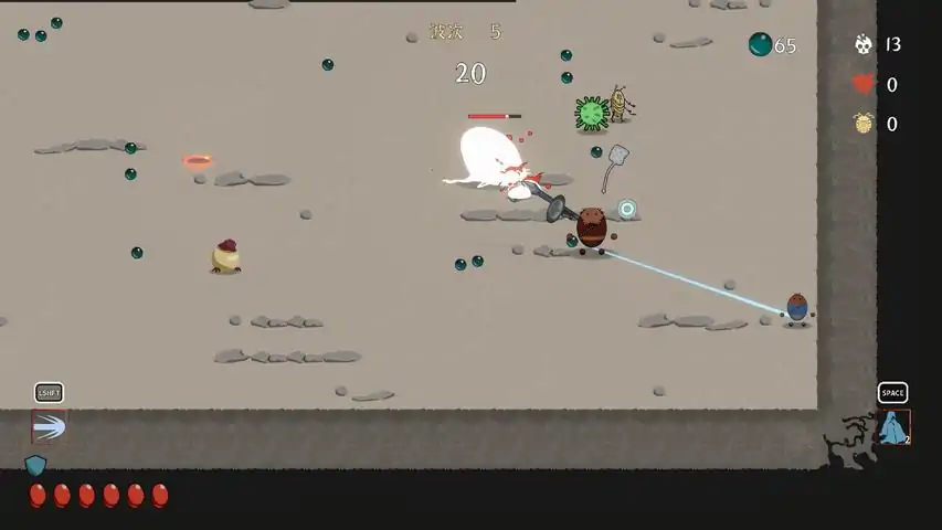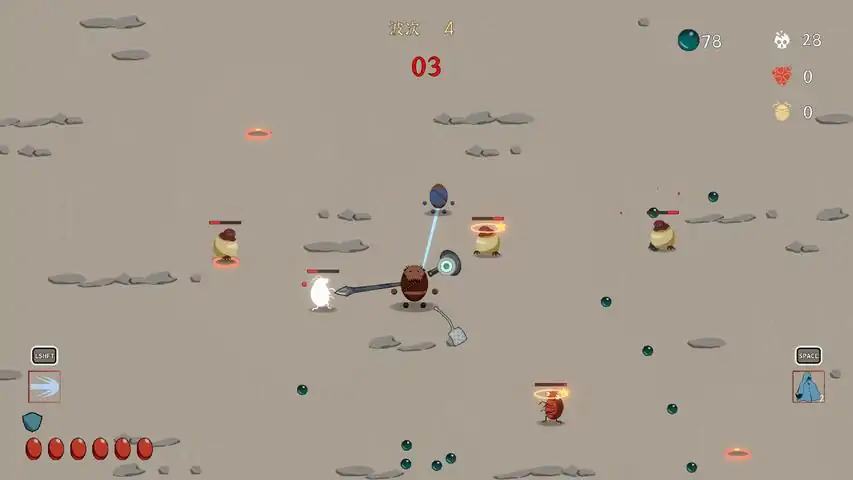 《咸蛋不疼》是一款单人双摇杆同时操作双角色的轻度rogue生存游戏。在有限的战场空间中,您需要关注的首要目标是没有攻击能力的角色(小蛋)不能阵亡,同时控制有攻击能力的角色(大蛋)尽最大可能杀死敌人,从而使小蛋获取怪物奖励,实现双角色不断变强。游戏特色:双摇杆同时控制双角色(支持键盘操作),考验您的分脑控制;攻击角色有多样的武器选择,非攻击角色有多样的技能选择,与双角色间的精神链接及其他道具能够组合出不同的玩法体验;只要双角色间的精神能量够用,攻击角色就有子弹时间来释放冲刺攻击,提升砍杀效率;提供局外成长,解锁新难度、新角色、新武器、新技能。
