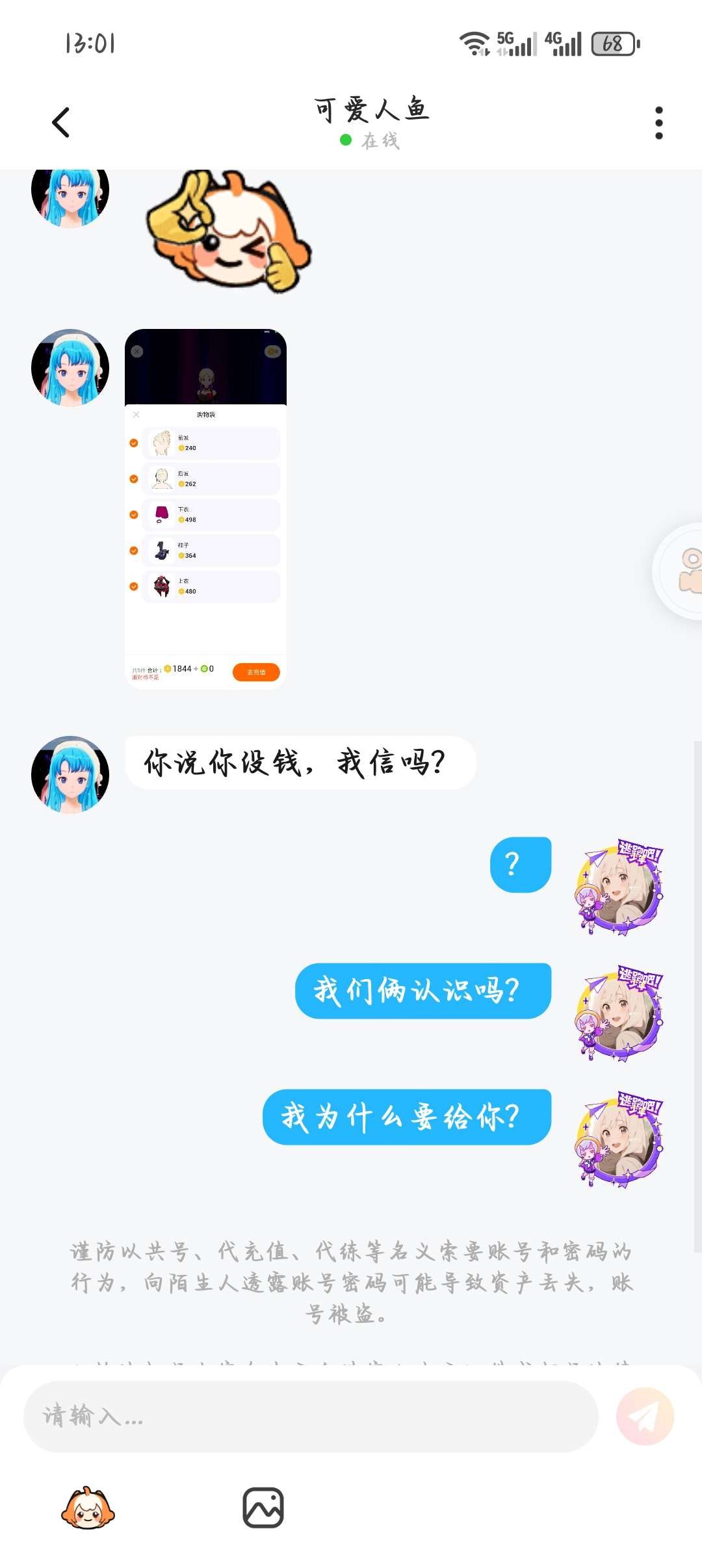 家人们避雷这个人,根本就不认识,向我要皮肤