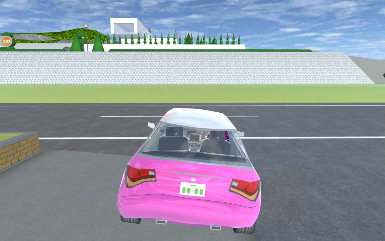 然后再一直往回开(注意开车开的靠中间呦,并且要一直加速,太快了也可以稍微减减速,自己调理)一直开到学校屋顶即可