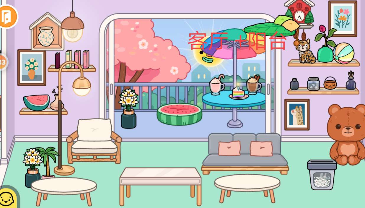 客厅加阳台,这个大熊娃娃超可。