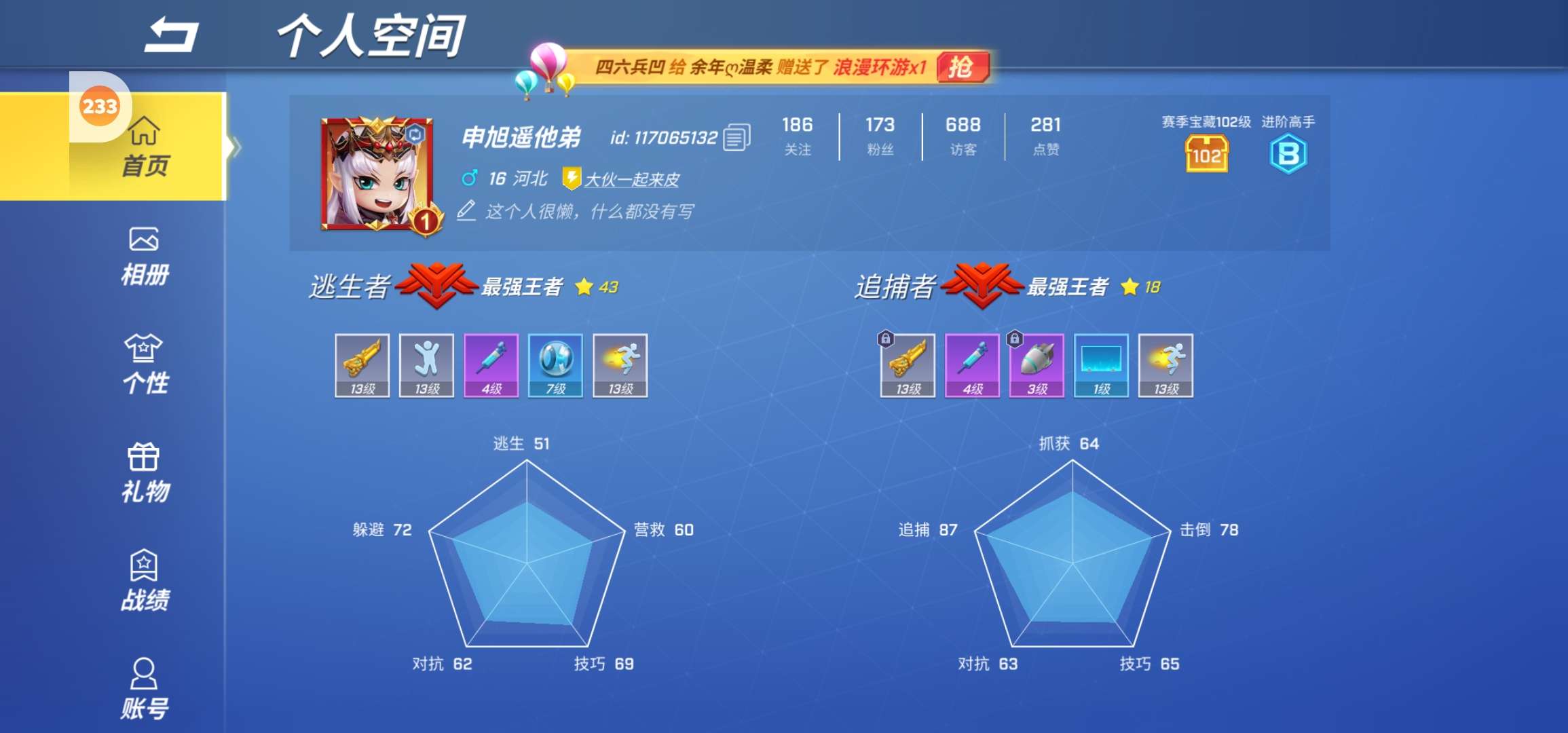找徒弟啦,找徒弟超凡段位就可以,追捕者黄金就行这是我的号