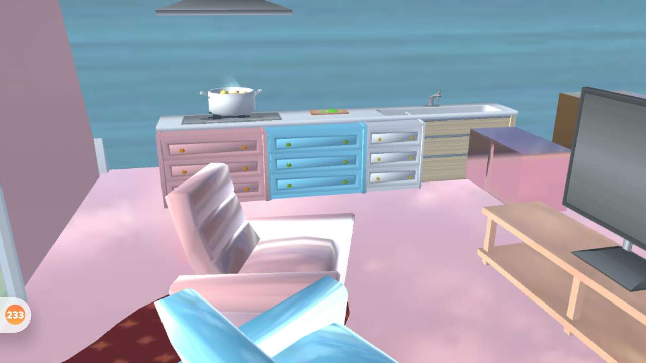 进门就是客厅和厨房,粉蓝交错,超🉑~