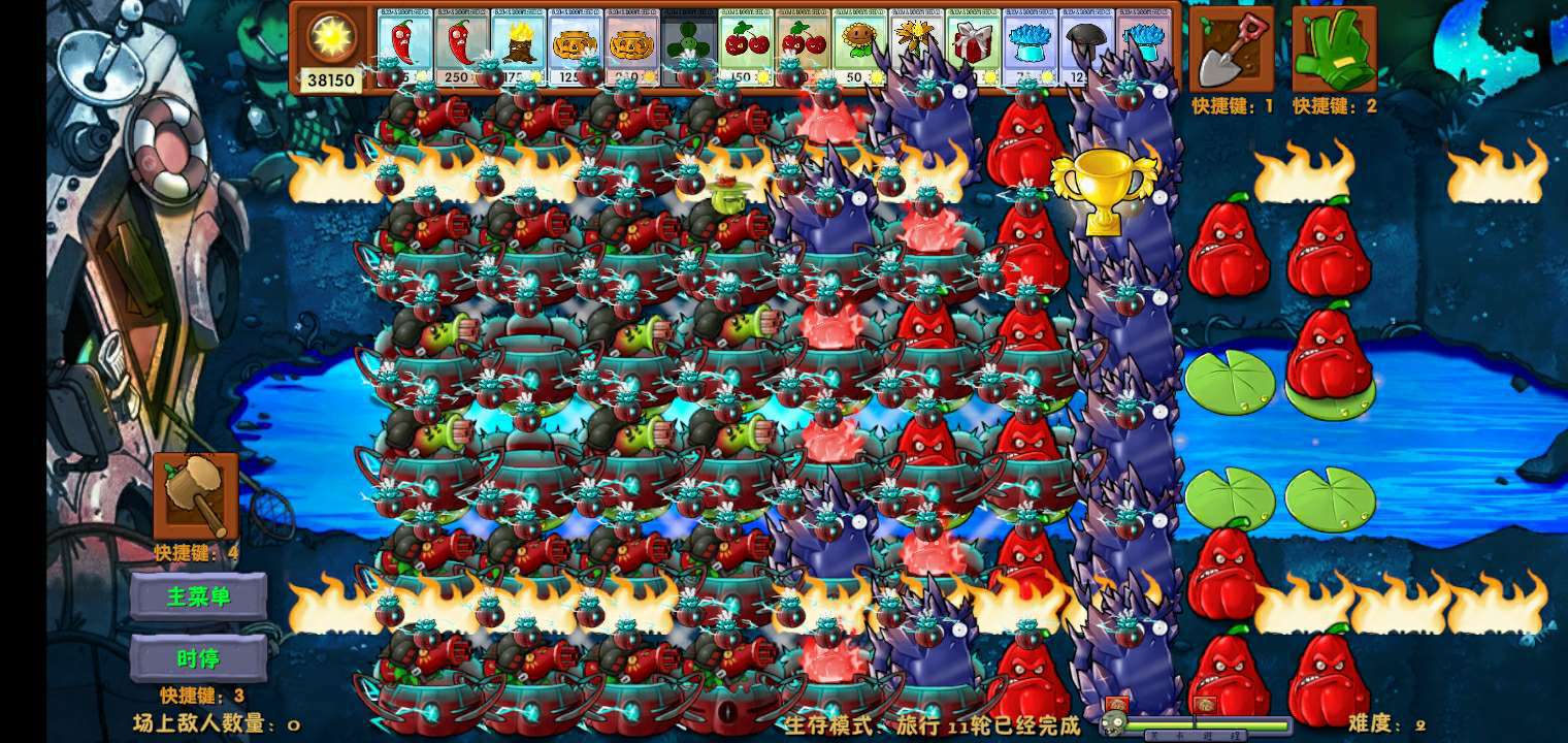 我说一下我这个手机:僵尸多的时候卡,樱桃机枪二爷的樱桃可以窜过坚果,所以我时停我是真的迫不得已啊
