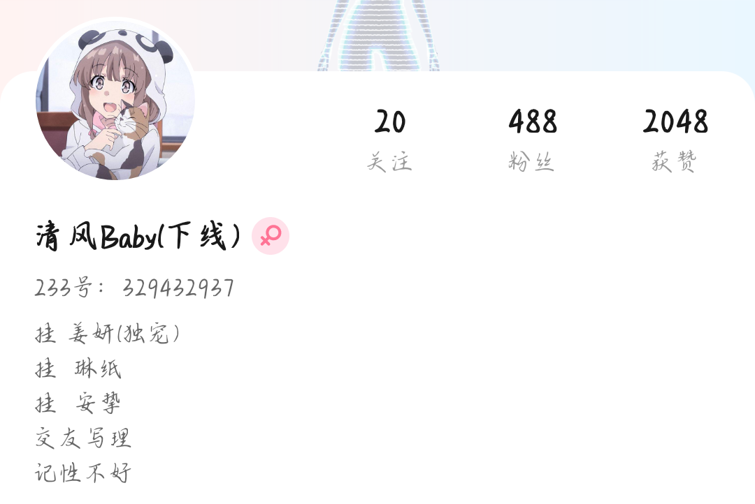 吸吸又换了一次简介🌚名字也换了🌚✌